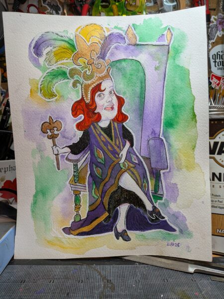 This painting was done on cold press paper using watercolor, gouache, ink, and acrylic. 8″x10″.